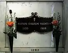 Прах актора похований на кладовищі Голлівуд назавжди (Hollywood Forever). Протягом багатьох років на кожну річницю смерті Валентино до його могили приходили тисячі жінок. Це стало настільки звичним, що коли в 1956 році, через 30 років після смерті актора, на його могилу не прийшла жодна прихильниця, цю новину визнали гідною поширення по каналах найбільших телеграфних агентств.