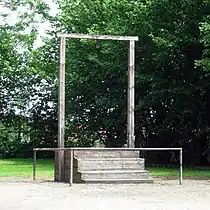 Шибениця, на якій повісили Гьосса. На передньому плані - меморіальна табличка.