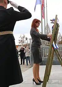 Делегація міністерства оборони Словенії біля пам'ятника Рудольфу Майстеру (Любляна, 2013)