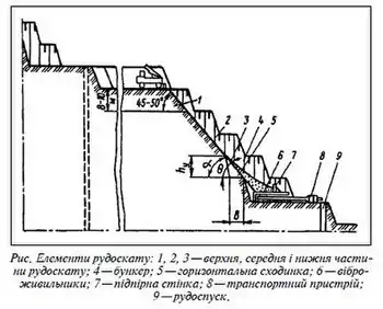 Аналогічна виробка для транспортування гірської породи називається породоскат. Використовуються в нагірних кар’єрах, виконуються відкритими або закритими. Р. армують сталевими листами або плитами. Для уникнення розлітання шматків гірничої маси Р. зверху перекривають металевою сіткою. Закриті Р. обладнують трубами великого діаметра, що періодично перевертаються (повертаються на певний кут) для рівномірного зносу їх стінок. Для гасіння швидкості переміщення гірничої маси по Р. його трасу роблять ламаною. При невеликих довжинах транспортування Р. в ниж. частині обладнуються бункером із завантажувальним пристроєм. При використанні Р. на узгір’ях з невеликими кутами укосу застосовують т. зв. каскадне переміщення гірничої маси. При цьому транспортна траса має похилі і горизонтальні ділянки.