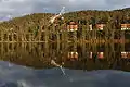 Трамплін, котеджі й озеро