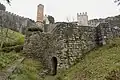 Простір всередині кожної вежі розділено дерев'яними підлогами, кожна з веж була обладнана піччю. Конічні дерев’яні дахи, покриті свинцем, які увінчували вежі, на сьогодні не збереглись.