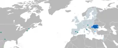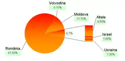 | Поширена в | Румунія, Молдова, Сербія, Україна, Італія, Іспанія, Болгарія, США, Канада, Ізраїль, Росія, Португалія, Велика Британія, Франція, Німеччина. |