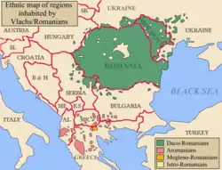 В англійській мові поняття Romanian (що українською зазвичай означає «румунський, румунська» тощо) іноді використовують в узагальненому значенні[36], яке охоплює 4 східнороманські мови: дакорумунську, арумунську, мегленорумунську та істрорумунську. Ці 4 мови, взаєморозуміння між мовцями яких тепер є важким, залишаються нащадками розмовних варіантів народної латини, поширених на північ та на південь від Дунаю до того, як сюди прийшли слов'яни. Отож, дакорумунська поширена на північ від Дунаю, арумунська та мегленорумунська — на південь, а істрорумунську вважають наслідком міграції в 11 столітті румунів до Істрії (сучасна Хорватія).