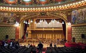 Внутрішню частину круглої стіни концертного залу 75 м в довжину і 3 м в ширину прикрашає фреска художника Костіна Петреску, що зображає найбільш важливі моменти румунської історії, починаючи з завоювання Дакії римським імператором Траяном і закінчуючи виникненням Великої Румунії в 1918 році.