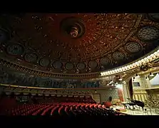 Всередині, на першому поверсі розташовані великий конференц-зал, вище — зал для глядачів на 600 місць в партері і 52 — в ложах.