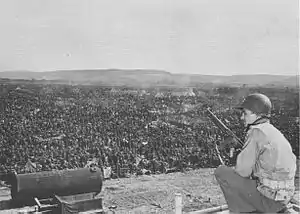 Німецькі військовополонені під охороною американських військ. 25 квітня 1945 | |||||||
