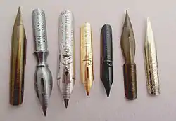 Поширення пергаменту призвело до появи нового інструмента для письма — загостреного певним чином пташиного пера. Пера використовували гусячі або воронячі, а чорнило робили з соку чорнильних горішків, залізного купоросу і гуміарабіку. Це чорнило всмоктувалося у шкіру і не змивалося, його можна було тільки зіскоблити. Старовинне чорнило відрізнялося від нашого однією особливістю. Поки ним писали, воно було дуже блідим, а чорним ставало тільки через деякий час. На папері також писали гусячими перами, які потрібно було попередньо зрізати навскоси, загострювати й розщеплювати за допомогою складаного ножа («цизорика»)[1]. Гусячі пера як інструмент для письма проіснували до кінця 18 століття.
