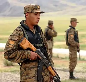 ![]() Іракські солдати тренуються стріляти з РПК ![]() Монгольський солдат з РПК |
