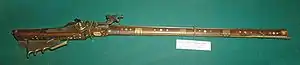 З винаходом ґнотового замка поводження з рушницею стало простіше. Ґніт приводився в дію за допомогою важеля, що знаходиться на ложі, що звільняло обидві руки, дозволяючи більш міцно утримувати зброю і впевненіше цілитися. Запалювальний отвір було перенесено в сторону, під ним з'явилася полиця для запалу — ґніт тепер не закривав ціль. Одночасно удосконалилася форма ложі — вона з прямої стала злегка зігнутою, більш зручною для прицілювання. Тим часом, для постійної готовності до пострілу стрільцю як і раніше доводилося постійно роздувати ґніт, підтримуючи його тління. Вночі та в сутінках ґніт сильно демаскував стрільця. Іноді для зберігання в запаленому стані і маскування його ховали в спеціальний футляр з перфорованими, для доступу повітря, стінками. Прогорав ґніт досить швидко — за годину згорали приблизно 30 см його довжини. Під час заряджання його гасили або знімали зі зброї і кріпили де-небудь в стороні, наприклад — на широких полях характерного «мушкетерського» капелюха, щоб уникнути випадкового пострілу під час заштовхування кулі у ствол.