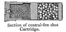 - George C. Nonte. Firearms encyclopedia. Harper & Row. с. 76. ISBN 978-0-06-013213-2. «A shotshell which has been cut partially through forward of the head in hope of reducing shot dispersion.»