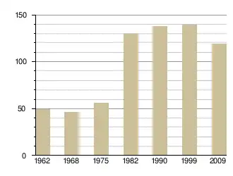 - Insee : historique des populations par commune depuis le recensement de 1962, наведено за французькою вікіпедією