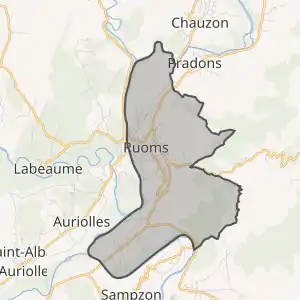 - Ruoms sur le site de l'Insee, наведено за французькою вікіпедією
