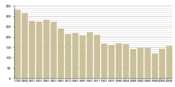 Динаміка населення (base Cassini de l'EHESS pour les nombres retenus jusque 1962[3], base Insee à partir de 1968 (population sans doubles comptes puis population municipale à partir de 2006)[4] · [5] ):