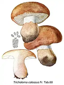 | Agaricus colossus Fr., [1] Tricholoma colossus (Fr.) Quél., [2] | ||||||||||||||||