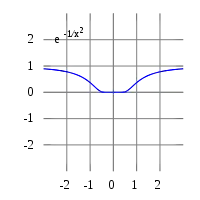 нескінченно диференційована в точці , і має всі похідні рівні нулю. Отже, ряд Тейлора при тотожно дорівнює нулю. Проте, не нульовий функція, так що її ряд Тейлора не дорівнює значенню функції навколо початку координат. Таким чином, є прикладом неаналітичної гладкої функції.