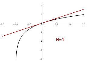 Об'єднуючи вищий ряд Маклорена, ми знаходимо ряд Маклорена для , де означає натуральний логарифм: