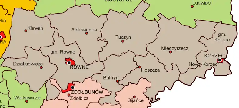 - Rozporządzenie Rady Ministrów z dnia 16 lipca 1924 r. w sprawie podziału powiatu rówieńskiego na dwie jednostki administracyjne i kreowania powiatu kostopolskiego tudzież regulacji granic powiatów: rówieńskiego, dubnowskiego, łuckiego, ostrogskiego, krzemienieckiego i horochowskiego. (пол.)