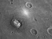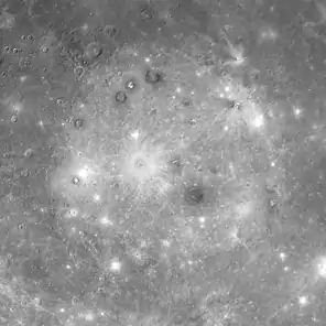 ![]() Рівнина Спеки (кругла світла область). Мозаїка знімків «Мессенджера», зроблених 14 січня 2008 | ||||