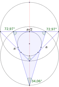 Рівнобедрений трикутник, що має те саме описане і вписане коло і однакову відстань між їх центрами (), має кути: