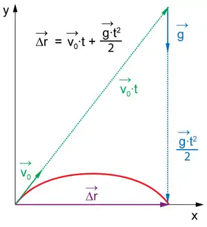 На заданому інтервалі часу вона являє собою ділянку параболи, яка за паралельності (тобто спів- або проти-спрямованості) векторів і перетворюється на відрізок прямої.