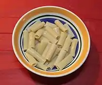 Рігатоні - особливо улюблена форма макаронних виробів на півдні Італії, особливо на Сицилії. Однойменні рифлені хребти сприяють кращій адгезії поверхні до соусів та тертих сирів, ніж макаронні вироби з гладкими сторонами, такі як ziti. [5]