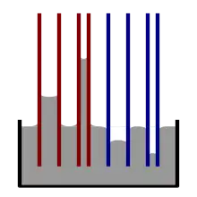 Від явища змочування залежить поведінка рідини в тонкій (капілярній) трубці, зануреній у неї. У разі змочування рідина в трубці піднімається над рівнем вільної поверхні, у протилежному випадку — опускається. Висоту капілярного підняття (опускання) рідини знаходять за формулою