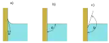 На поверхні поділу трьох фаз, наприклад, твердої стінки, рідини і газу між поверхнею рідини і твердою стінкою утворюється так званий крайовий кут θ. Величина крайового кута залежить від природи дотичних середовищ (від поверхневих натягів на їхніх межах) і не залежить ні від форми посудини, ні від дії сили ваги. Якщо край рідини піднятий, її поверхня має увігнуту форму — крайовий кут гострий. У цьому разі рідина змочує тверду поверхню. Чим гірша змочувальна здатність рідини, тим більшим є крайовий кут. При θ>90° рідина вважається незмочувальною, при повному незмочуванні θ=180°. Краплі такої рідини немов би підгортаються, намагаючись зменшити площу контакту з твердою поверхнею.