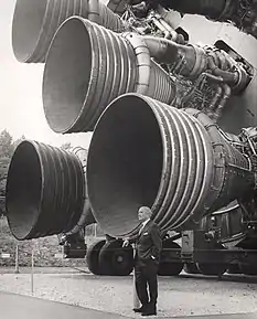 Рушійна установка North American Rockwell, Rocketdyne F-1, 5 двигунів встановлені на першому ступені носія Сатурн V поряд з конструктором ракети Вернером фон Брауном. Ці двигуни забезпечили політ людини на Місяць. Тяга на рівні моря — 691 тс. Перший політ — 1967 року.