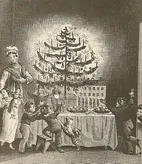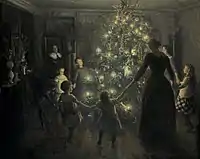 - Perry, Joe (27 вересня 2010). Christmas in Germany: A Cultural History (англ.). University of North Carolina Press. с. 32. ISBN 9780807899410. «A chronicle from Stasbourg, written in 1604 and widely seen as the first account of a Christmas tree in German-speaking lands, records that Protestant artisans brought fir trees into their homes in the holiday season and decorated them with "roses made of colored paper, apples, wafers, tinsel, sweetmeats, etc." ... The Christmas tree spread out in German society from the top down, so to speak. It moved from elite households to broader social strata, from urban to rural areas, from the Protestant north to the Catholic south, and from Prussia to other German states.»