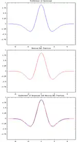 отримана шляхом віднімання зображення згортка з гаусовою дисперсією від зображення згортка з вузькою різницею , при . Для одного виміру визначається: