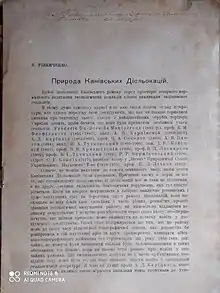 - «Про четвертинні рухи земної кори в районі сер. Дніпра». Записки Фізико-матем. Відділу ВУАН, 1931.