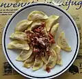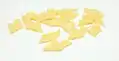 Фарфале (італ. Farfalle) | У формі краватки-бантика або метелика | Метелики | fiochetti, fiocconi, farfalloni, galla genovese, strichetti (Модена), nocchette (Апулія and Абруццо)[62] | |