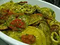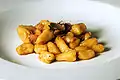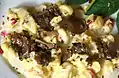 Malloreddus | Паста у формі раковини з шафраном.[83] Існує також машинно-екструдована версія, котра зазвичай не використовує шафран. | У кампіданському діалекті malloreddu це самець корови (множина malloreddus)[84] | Gnocchetti sardi, caidos, macarones cravaos, maccaronis de orgiu | Сардинія |