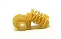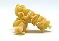 Фузіллі (італ. Fusilli) | Довга, товста паста у формі штопора, що може бути суцільною або порожнистою. | Слово fusilli імовірно, походить з італійської: fuso, що означає "веретено".[64] | Eliche, girandole, rotini, tortiglioni, spirali[9][64] | |