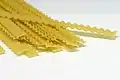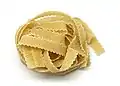 Mafalde | Довгі прямокутні стрічки з гофрованими сторонами. | Названа на честь Princess Mafalda of Savoy[23][28] | Reginette, frese, tagliatelle nervate, signorine, trinette, ricciarelle, sfresatine, nastri, nastrini | Неаполь |