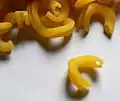 Chifferi | Короткі і широкі макарони. Можуть бути гладкі (lisce) або з борознами (rigati).[59] | Від австрійського печива Kipferl.[60] | Gomiti[5] | |