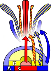 Спостереження подібних мутацій призвело до відкриття і формулювання Коеном і Меєровіцом універсального принципу розвитку квітки, яка має назву АВС модель розвитку квітки [18]. Згідно з цією моделлю, гени, які контролюють ідентичність меристеми суцвіття можна умовно розділити на три класи. Гени класу А контролюють розвиток чашолистків і пелюсток, гени класу В відповідають за розвиток пелюсток і тичнок, а гени класу С — за розвиток тичинок і гінецію.