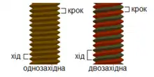 - за кількістю заходів різьби — однозахідні і багатозахідні (двозахідні, тризахідні і т. д.);