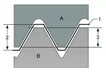 - Висота профілю — висота профілю між заглибиною і вершиною, виміряна в напрямку, перпендикулярному осі різі.