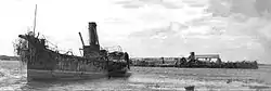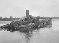 ![]() Сторожовий корабель «Ріка», затоплений на Дніпрі, серпень 1941 р. | |
