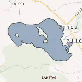 Озеро лежить між селами Ріксу (Ляене-Сааре) та Лагетаґузе (Салме).
