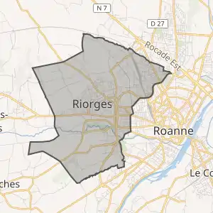 - Riorges sur le site de l'Insee, наведено за французькою вікіпедією