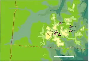 Розташований у південній частині Кампече. Загалом область Ріо-Бек, де виявлені городища цієї групи, охоплює 100 км2.