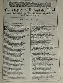 Вперше п'єса надрукована в 1597 році, потім 5 разів виходила окремими виданнями Quarto, і нарешті увійшла до великої збірки п'єс Шекспіра Folio 1623 року. Після виходу в світ Folio ще двічі друкувалися Quarto. Загалом Річард III в кінці 16-го та на початку 17-го століття друкувався більше, ніж будь-яка інша п'єса Шекспіра. Окремі видання були піратськими, надиктованими по пам'яті акторів, тому в них є чимало пропусків і спотворень. Вважається, що основу тексту Folio склало Quarto 1622 року, звірене з театральним рукописом.