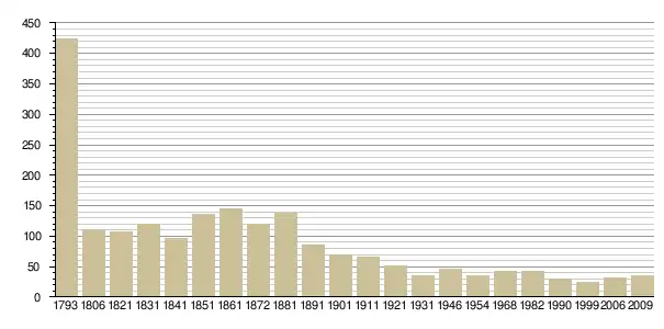 Динаміка населення (base Cassini de l'EHESS pour les nombres retenus jusque 1962[3], base Insee à partir de 1968 (population sans doubles comptes puis population municipale à partir de 2006)[4] · [5] ):