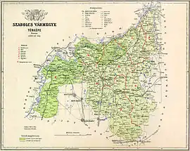 | Адміністративний центр (1910): Ньїредьгаза, (hu:Nyíregyháza). | |