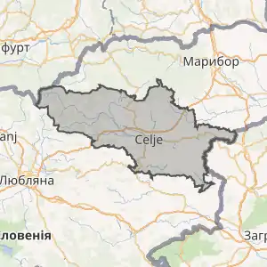 До складу регіону входять такі общини: Бистриця-об-Сотлі, Брасловче, Целє, Добє, Добрна, Горній Град, Козє, Лашко, Любно, Луче, Мозирє, Назарє, Подчетртек, Ползела, Преболд, Радече, Рогашка Слатина, Рогатець, Словенське Коніце, Солчава, Шентюр, Шмарє-при-Єлшах, Шмартно-об-Пакі, Шоштань, Шторе, Табор, Веленє, Витанє, Войник, Врансько, Зрече, Жалець.