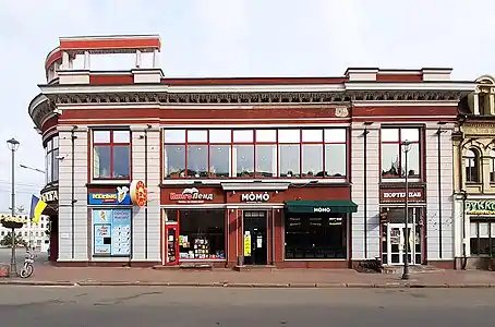 У 1936—1937 роках за проєктом архітектора Павла Савича наріжну споруду № 24 перебудували під універсальний магазин Воєнторгу. Згодом, до середини 2000-х років, тут містився Подільський універмаг. Під його потреби також віддали приміщення на першому поверсі будинку № 22/1. У флігелі облаштували склад[3][2].