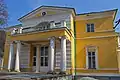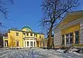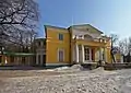 - Якийсь період з покинутою і знелюдненою садибою не знали що робити і як використати. На неї звернув увагу Отто Шмідт, оскільки у середині 1930-х років вона опинилась неподалік від Аеродрому полярної авіації. Впливовий на той час радянський науковець і дослідник О. Ю. Шмідт виборов право на утворення в покинутій садибі Будинку відпочинку Головпівнічморшляху (Главсевморпути). Тоді ж у 1936 році до компактного двоповерхового палацу добудували одноповерхові корпуси у вигляді літери Н, що утворило новий курдонер і новий парковий фасад комплексу. Нові прибудови потинькували і пофарбували в два кольори — жовтий тло і білий — архітектурні деталі. Нові прибудови ненабагато змінили архітектуру пам'ятки, а наблизили її до типових зразків садибної архітектури 19 ст. Для медичного обслуговування радянських відпочивальників вибудували також двоповерховий процедурний корпус (архітектор А. Б. Варшавер).